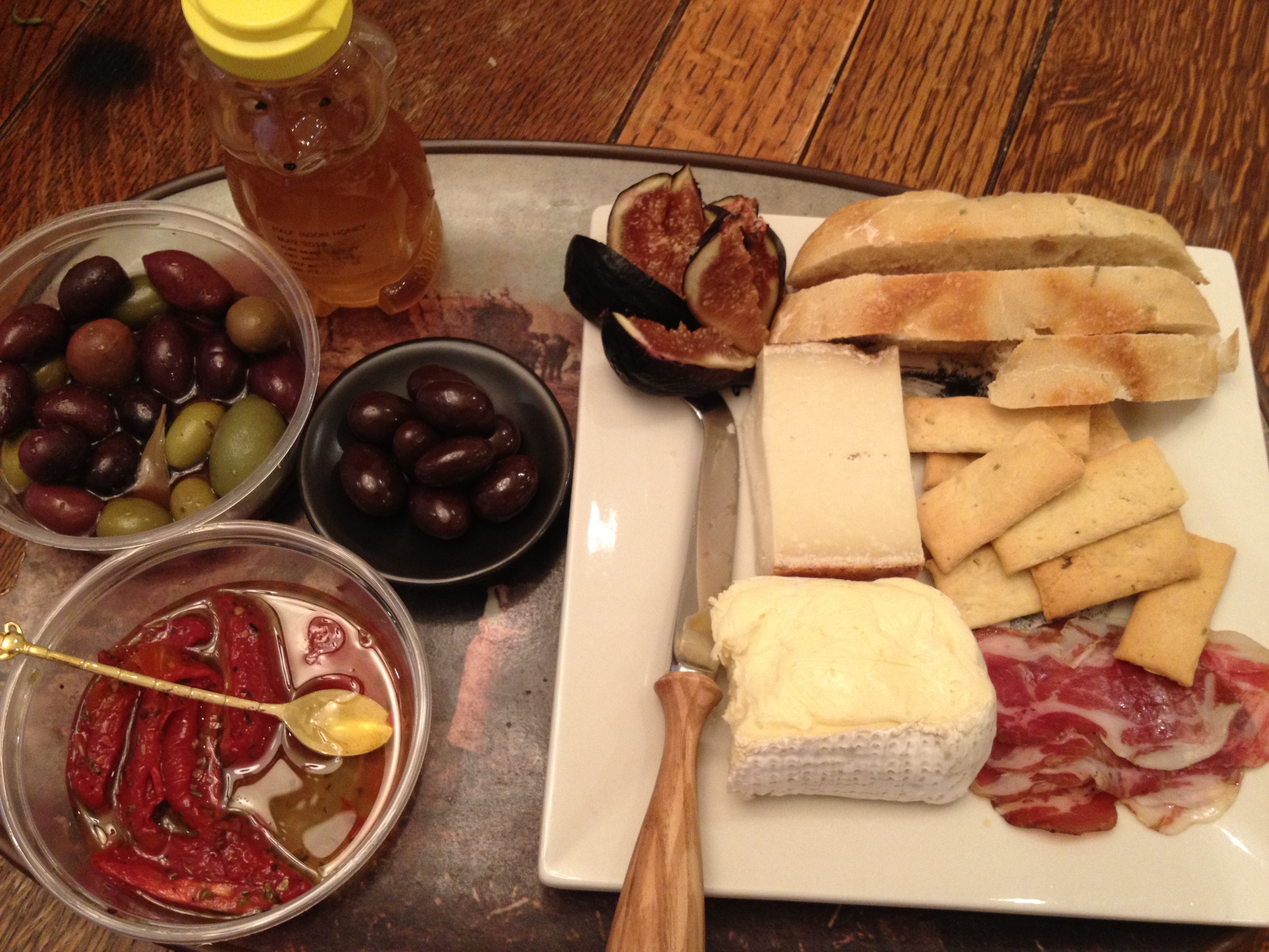 Sometimes, picnic dinners are the best. Whether the baby took longer than expected to go to sleep, there was traffic getting home and it’s now 7:30, it’s too hot outside to turn on the stove (that would be nice), or you just don’t have the motivation to cook, a hodge podge of condiments, cheeses, meats and crackers are what’s necessary (especially if it also includes a glass of wine).