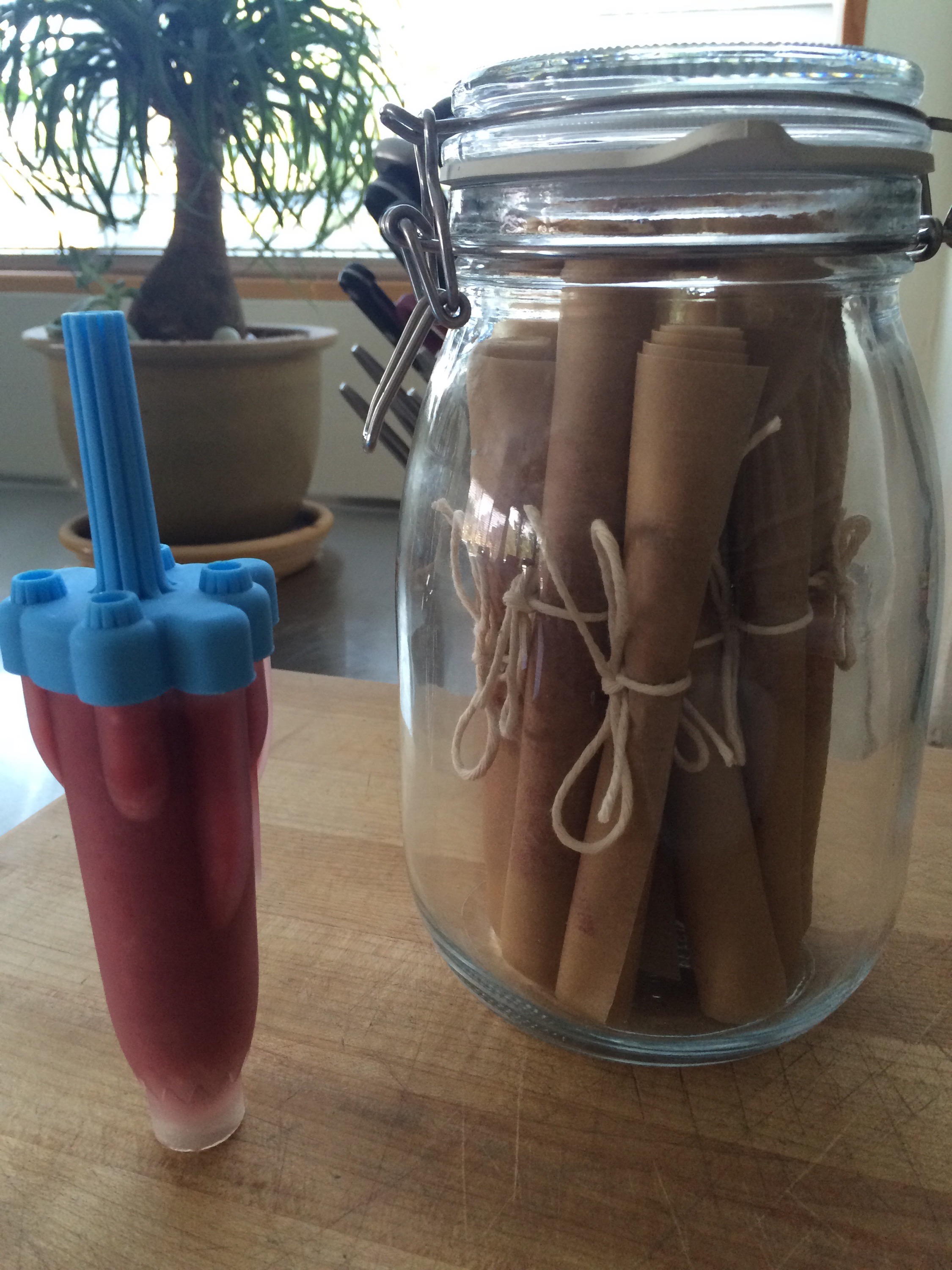 Its strawberry season! The smell of ripe strawberries is intoxicating. I just can’t resist buying a whole flat…weekly! This week’s batch made popcicles and fruit roll ups. Next week’s will make jam (see last year’s post).