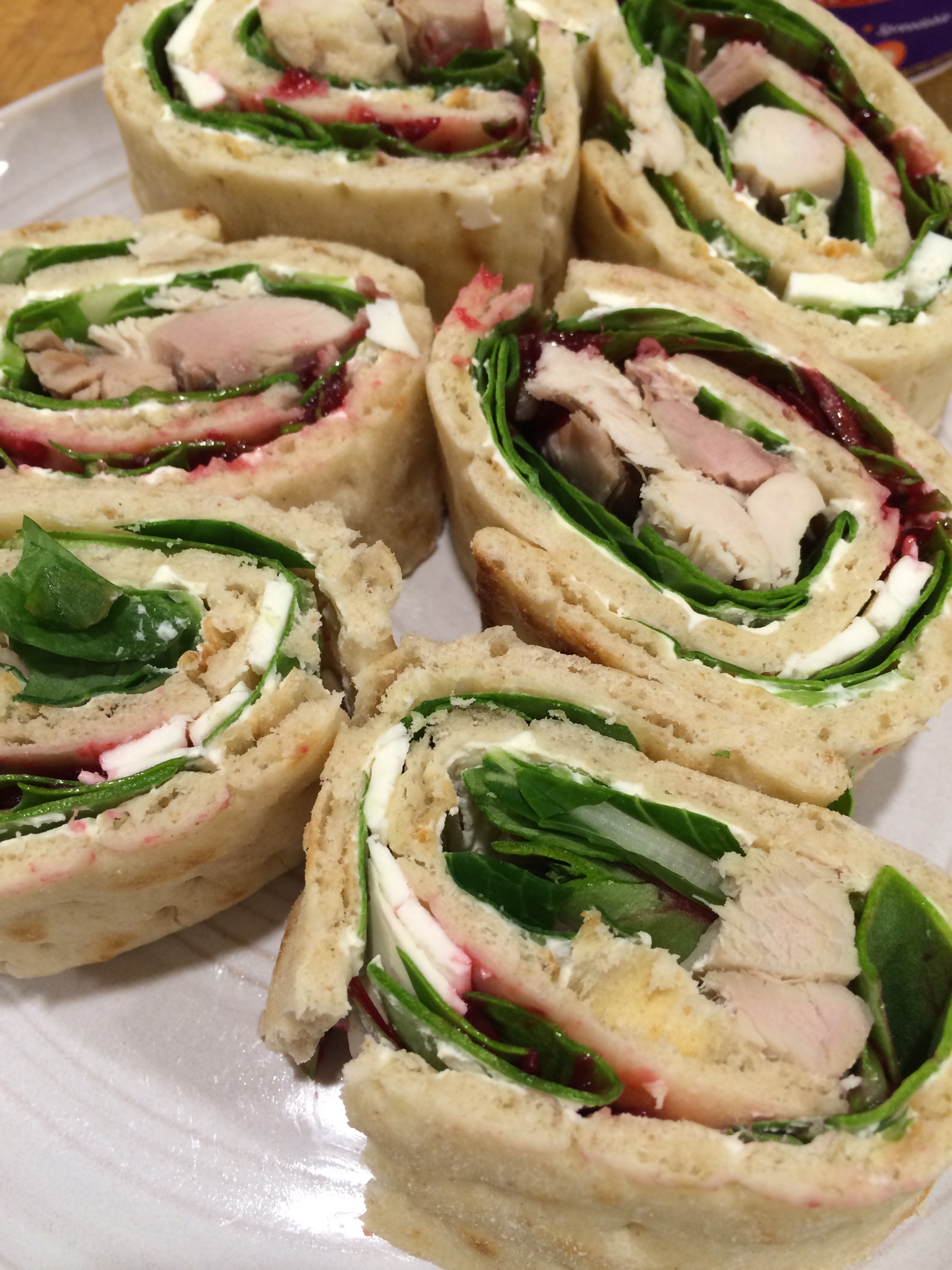 I usually pick up a package of lavash and just have it around to make leftover wraps. It is one of my favorite ways to recreate leftovers. All you need is a spread (hummus, pesto and hummus, cream cheese, dressing, anything really), some greens (I love spinach, arugula or super greens), a cheese (feta or goat are preferred), a meat (steak, turkey, chicken, tofu) and addition fun stuff (peppers, avocado, cucumbers, red onion, cranberry sauce).