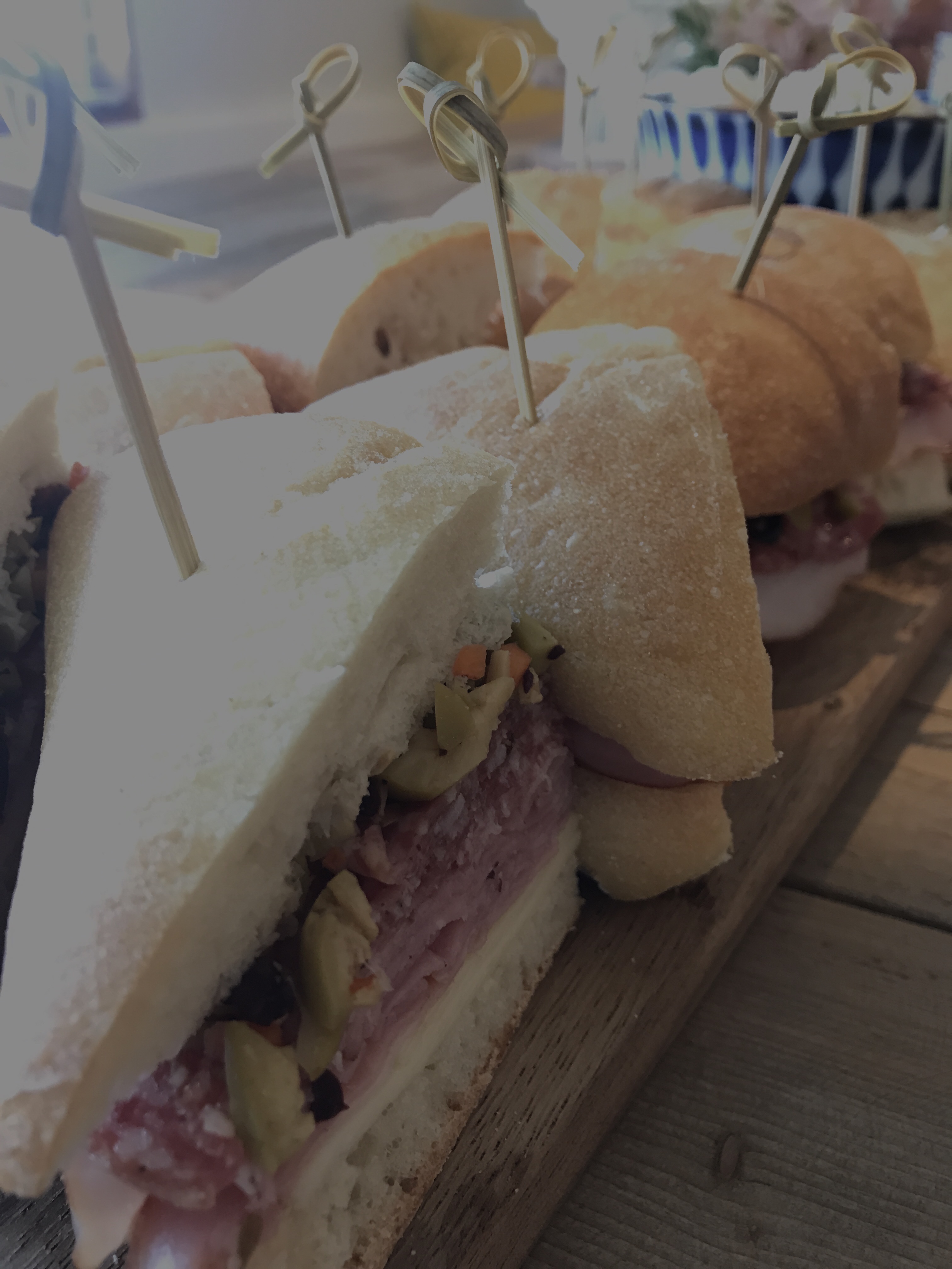 This is a great sandwich for parties. The briny olive salad cuts through the rich provolone and fatty salami. And ham, I mean, come on!!