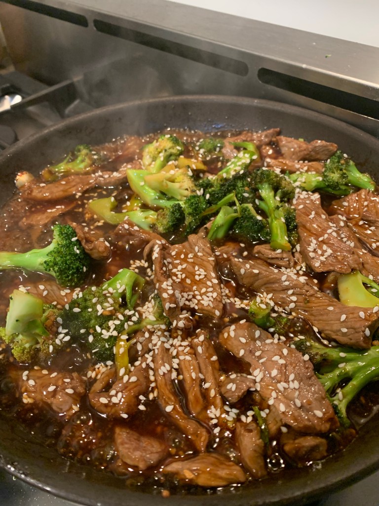 Add the broccoli and beef back to the pan with the sauce and cook for about 3 mins or until the sauce thickens a bit. It should just stick to the back of a spoon.
